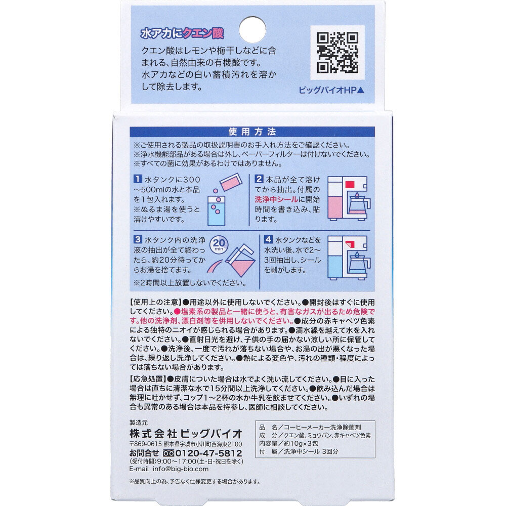 除菌メンテ コーヒーメーカークリーナー 約10g×3包入