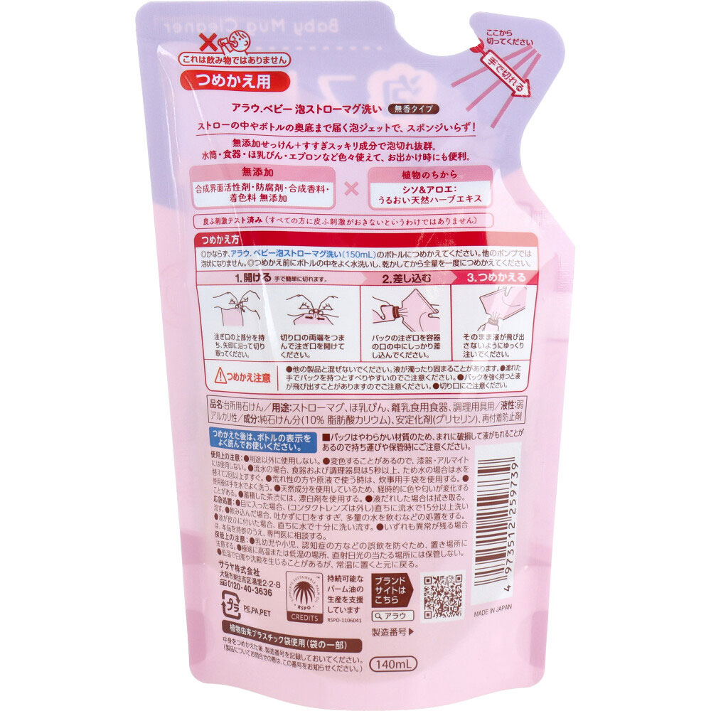 arau.(アラウベビー) 泡ストローマグ洗い 無香タイプ 詰替用 140mL