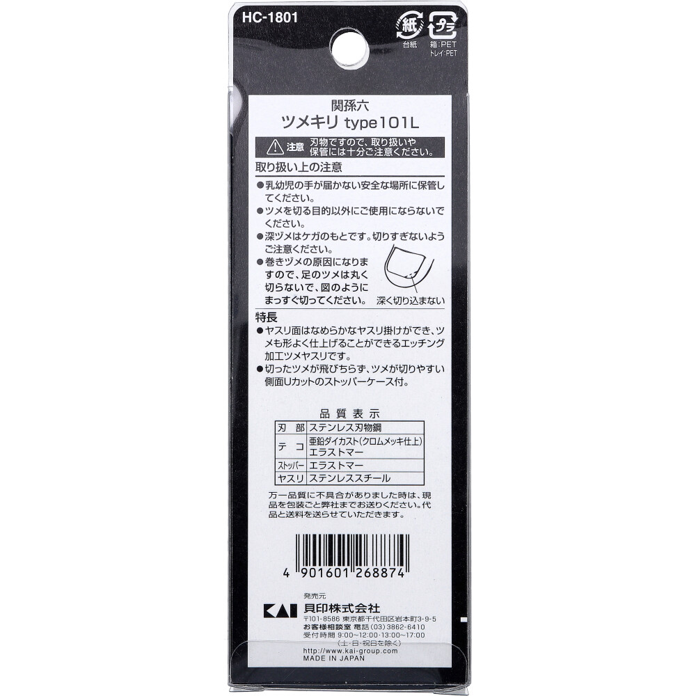 [メーカー欠品]関孫六 プレミアム爪切り type101 HC-1800 1個入