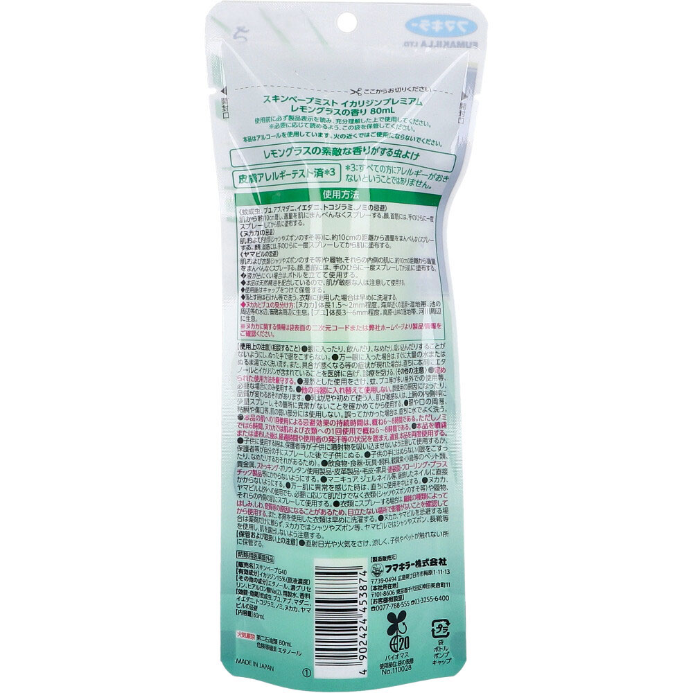 フマキラー スキンベープミスト イカリジンプレミアム レモングラスの香り イカリジン配合 80mL