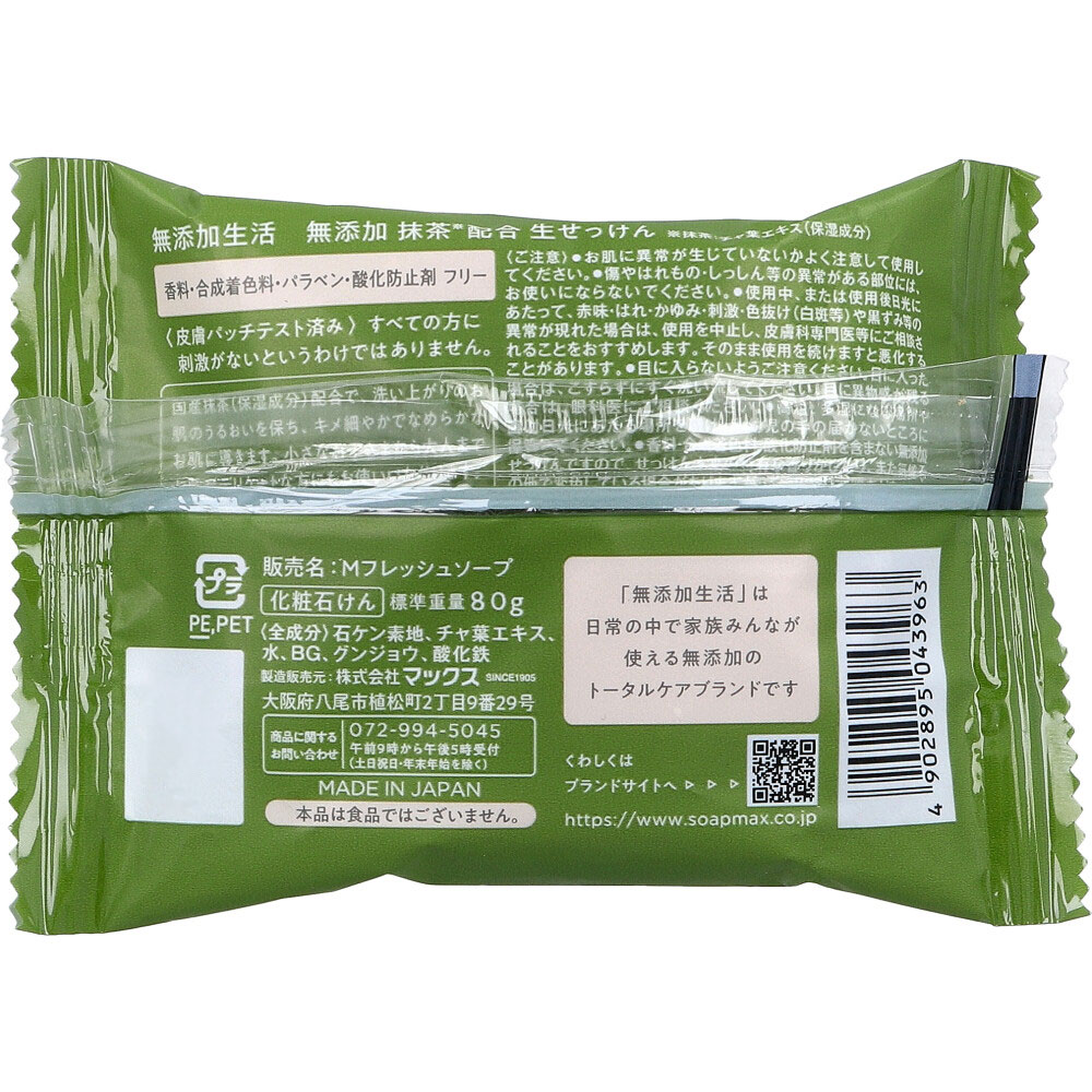 無添加生活 無添加 抹茶配合生せっけん 80g