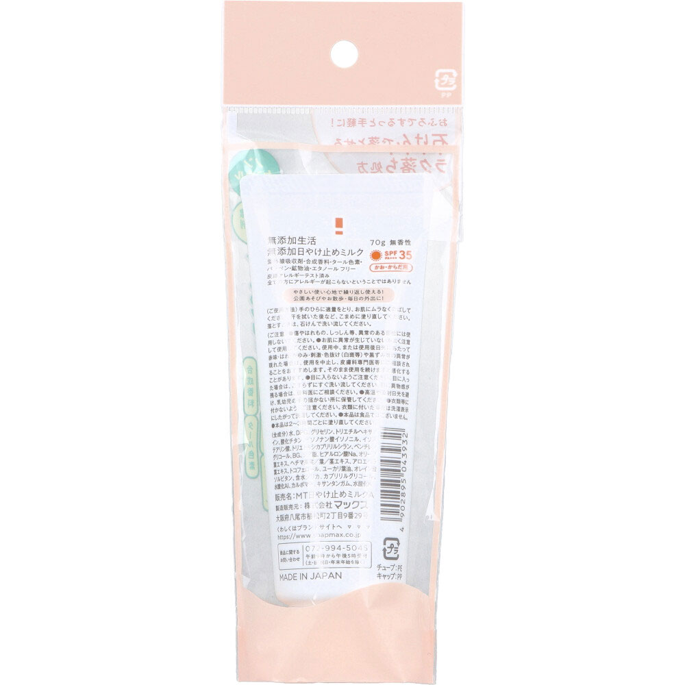 無添加生活 無添加 日やけ止めミルク かお・からだ用 SPF35 PA+++ 無香性 70g