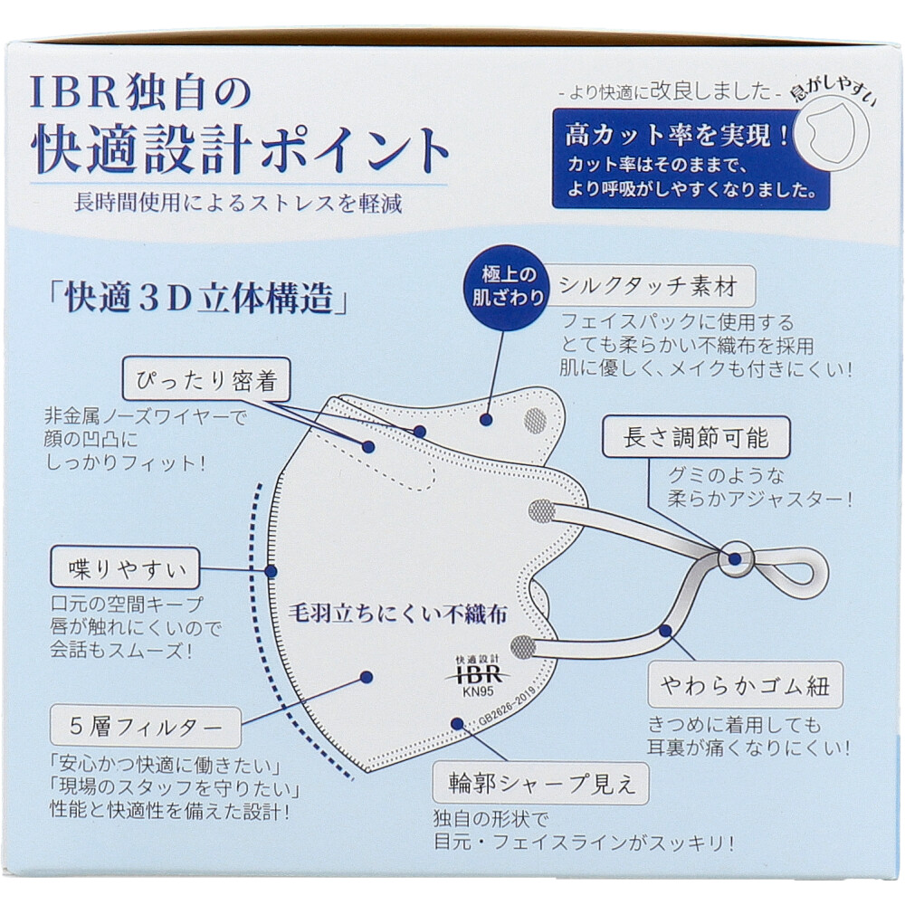 【業務用】KN95 息らくフィット 5層マスク ライト ノーズスポンジ無 個別包装 ホワイト 20枚入