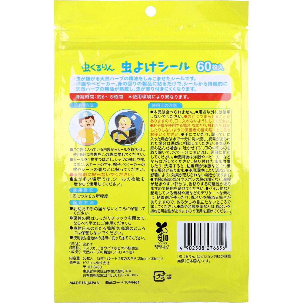 ピジョン 虫くるりん 虫よけシール ディートフリー さわやかなかんきつ系の香り 60枚入