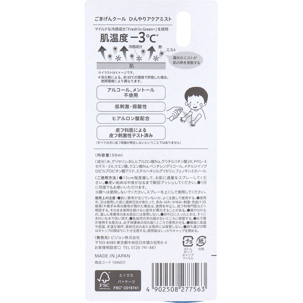 ピジョン ごきげんクール ひんやりアクアミスト 50mL