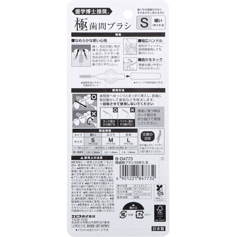 エビス 極(きわみ) 歯間ブラシ S 細い サイズ3 B-D4773 10本入