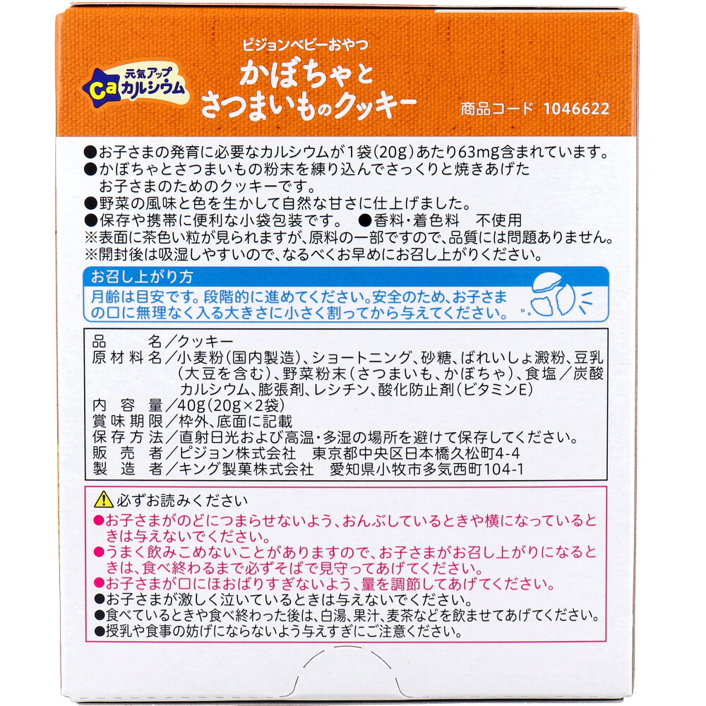 ※ピジョン ベビーおやつ 元気アップCa カルシウム かぼちゃとさつまいものクッキー 20g×2袋入