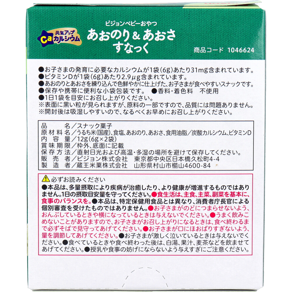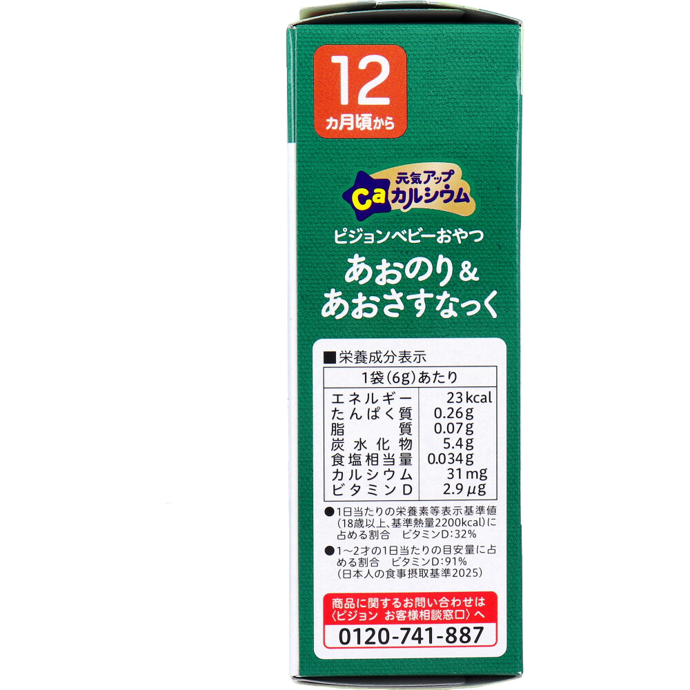 ※ピジョン ベビーおやつ 元気アップCa カルシウム あおのり&あおさすなっく 6g×2袋入