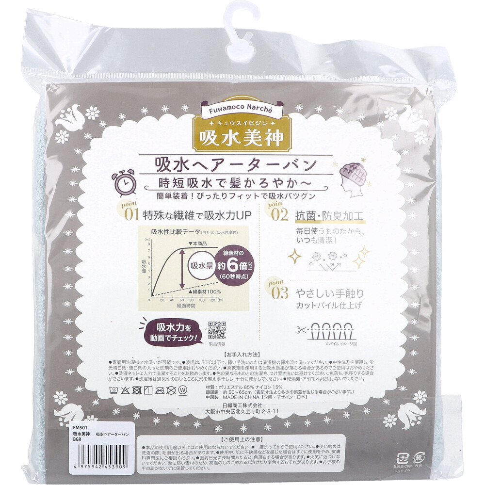 フワモコマルシェ 吸水美神 キュウスイビジン 吸水ヘアーターバン BGR 1枚入