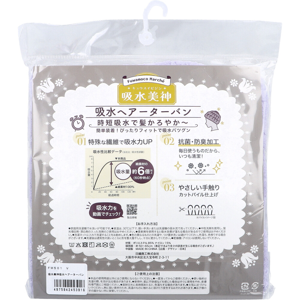 フワモコマルシェ 吸水美神 キュウスイビジン 吸水ヘアーターバン V 1枚入