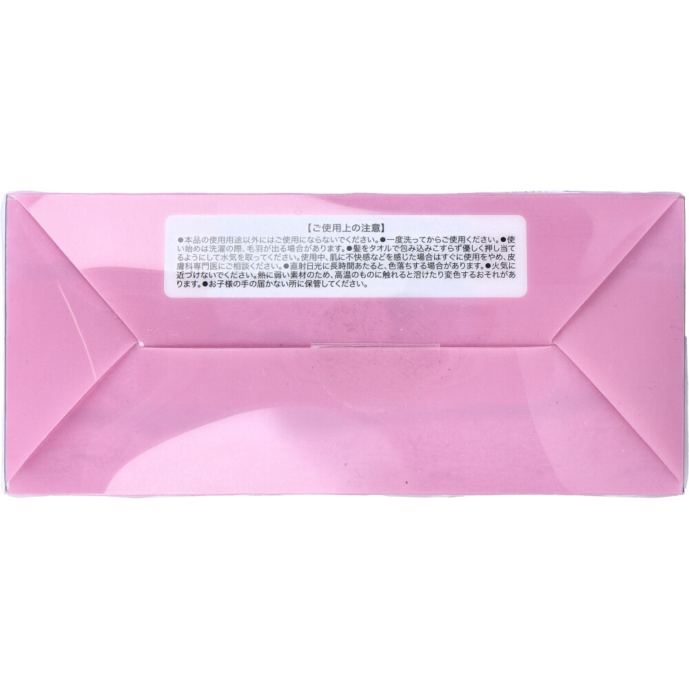 | 注意事項 | 【ご使用上の注意】 ・本品の使用用途以外にはご使用にならないでください。 ・一度洗ってからご使用ください。 ・使い始めは洗濯の際、毛羽が出る場合があります。 ・髪をタオルで包み込みこすらず優しく押し当てるようにして水気を取ってください。使用中、肌に不快感などを感じた場合はすぐに使用をやめ、皮膚科専門医にご相談ください。 ・直射日光に長時間あたると、色落ちする場合があります。 ・火気に近づけないでください。熱に弱い素材のため、高温のものに触れると溶けたり変色するおそれがあります。 ・お子様の手の届かない所に保管してください。 |