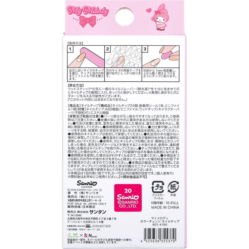 マイメロディ カラーチェンジ ネイルチップ 24枚入