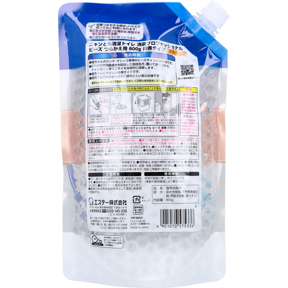 ニャンとも清潔トイレ 消臭プロフェッショナル ウンチ・オシッコ専用 ビーズ 微香タイプ 詰替用 800g