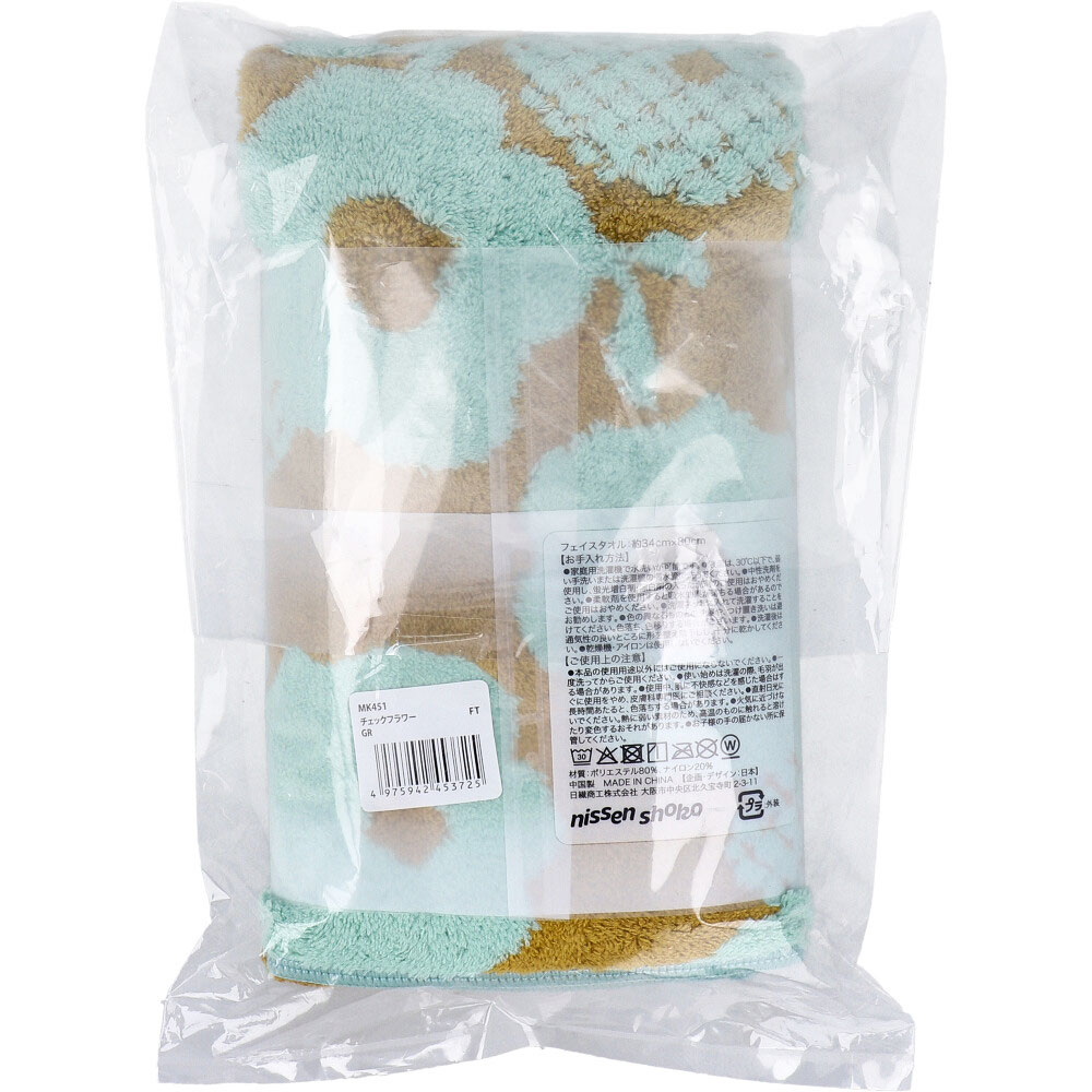 マイクロde吸水タオル チェックフラワー フェイスタオル 約34cm×80cm GR 1枚入