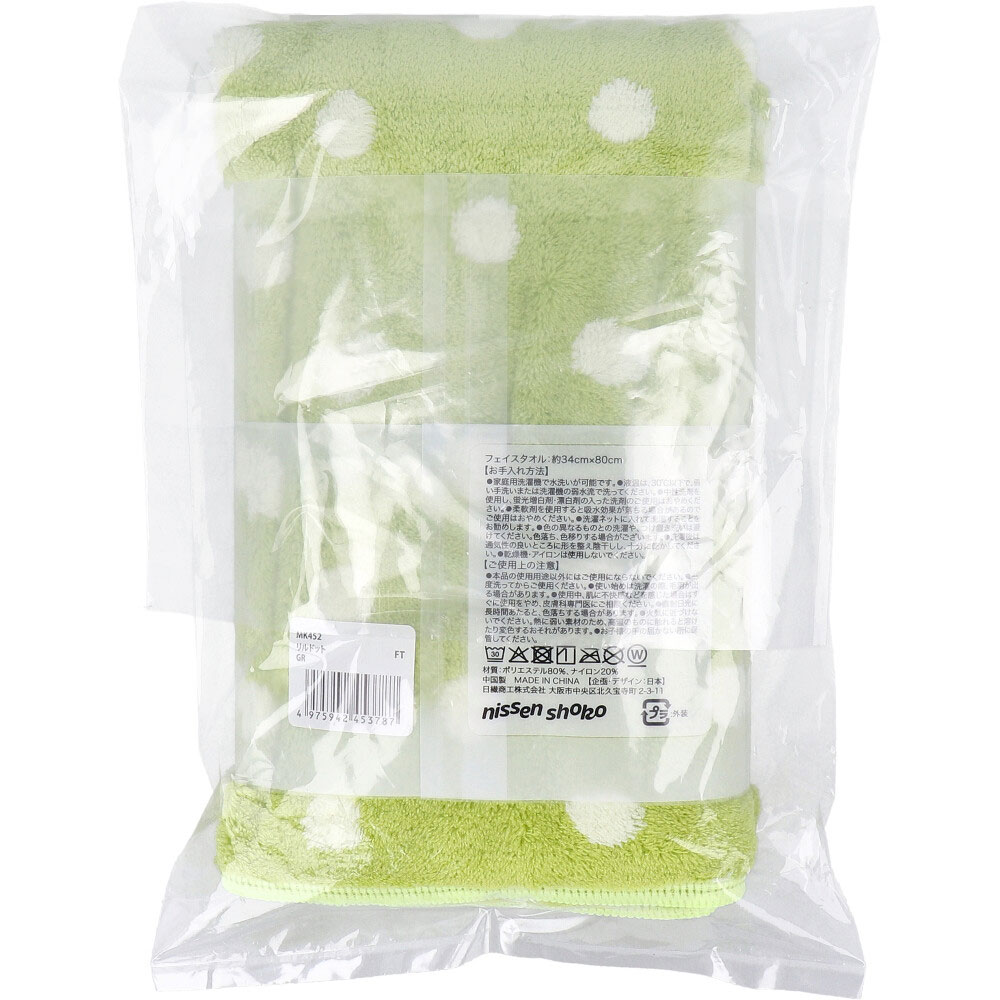 マイクロde吸水タオル リルドット フェイスタオル 約34cm×80cm GR 1枚入