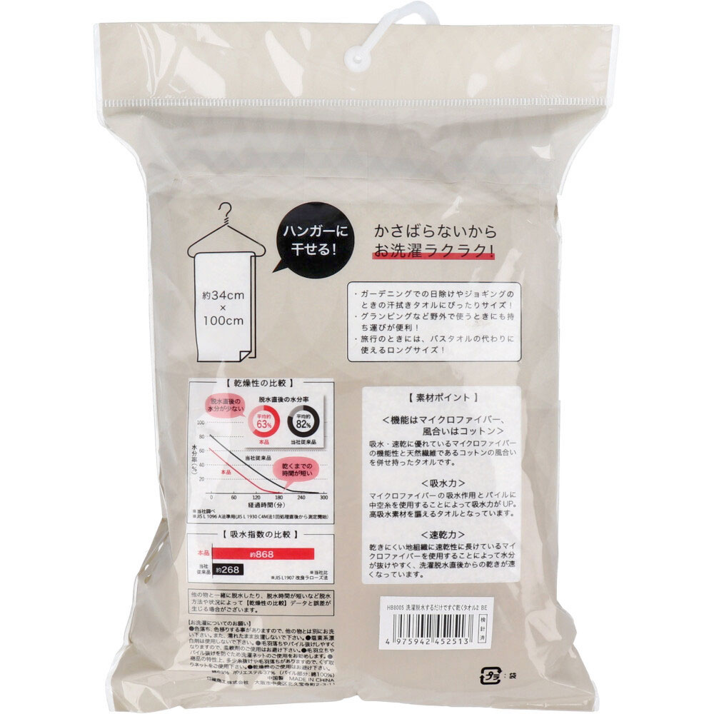 洗濯脱水するだけですぐ乾くタオル2 ロングタオル 約34×100cm ベージュ 1枚入