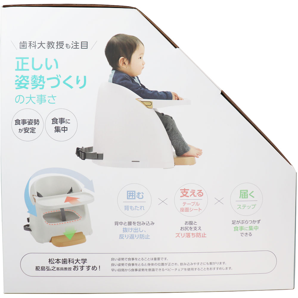 ●支える(テーブル・座面シート):お腹とお尻を支え、ズリ落ち防止。