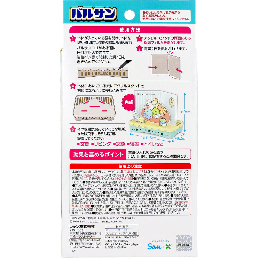 バルサン すみっコぐらし 虫こないもん 置き 無臭タイプ 270日 こんなおうち 1セット