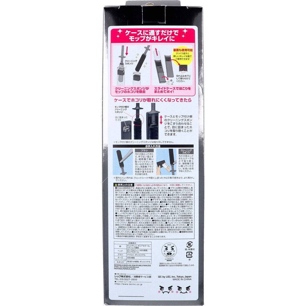 | 注意事項 | 【使用上の注意】 ・本品は清掃用具です。用途以外には使用しないでください。 ・ブラシは素材の構造上、裁断部分にほつれや素材片が発生する場合があります。気になる場合は取り除いてからご使用ください。 ・ブラシが濡れた場合は乾いたクロス等で拭きとり、よく乾かしてください。 ・金属やガラスの粉等の清掃には使用しないでください。 ・ブラシや清掃面に固いゴミや砂などが付着したまま使用しないでください。キズの原因になります。 ・ザラザラした面、突起のある面には使用しないでください。ブラシの繊維が抜ける場合があります。 ・無理な力が加わると、破損する場合がありますので、軽くすべらすようにご使用ください。 ・モップの先端を曲げたまま長時間放置しないでください。変形の原因となります。 ・柄やケースを落とすと損することがあります。 ・モップが入らないすき間には無理に押し込まないでください。ブラシが外れたり柄が破損するおそれがあります。 ・伸縮する際、指ををはさまないようご注意ください。 ・ヘッドを下に向けて立てかけないでください。ヘッドが変形・破損することがあります。 ・使用後は必ずケースに収納して保管してください。素材によって、モップが長期間接触すると色 が発生する可能性があります。 ・ケースが汚れた時は、水または中性洗剤を薄めた液で拭き、日陰でよく乾かしてください。 ・電球など高温になっているものには使用しないでください。電源を切り、冷えた状態でご使用ください。 ・テレビ・パソコンの液晶画面、表面加工された画面、くもり止めなどの加工された鏡には使用しないでください。 ・うるし・金銀箔などの柔らかい面への使用はキズをつける場合があります。あらかじめ目立たない部分で試してからお使いください。 ・劣化・変色するため、直射日光の当たらない場所に保管してください。 ・火のそばや高温になる所には置かないでください。 ・廃棄時は各自体の定める方法に従って処理してください。 |