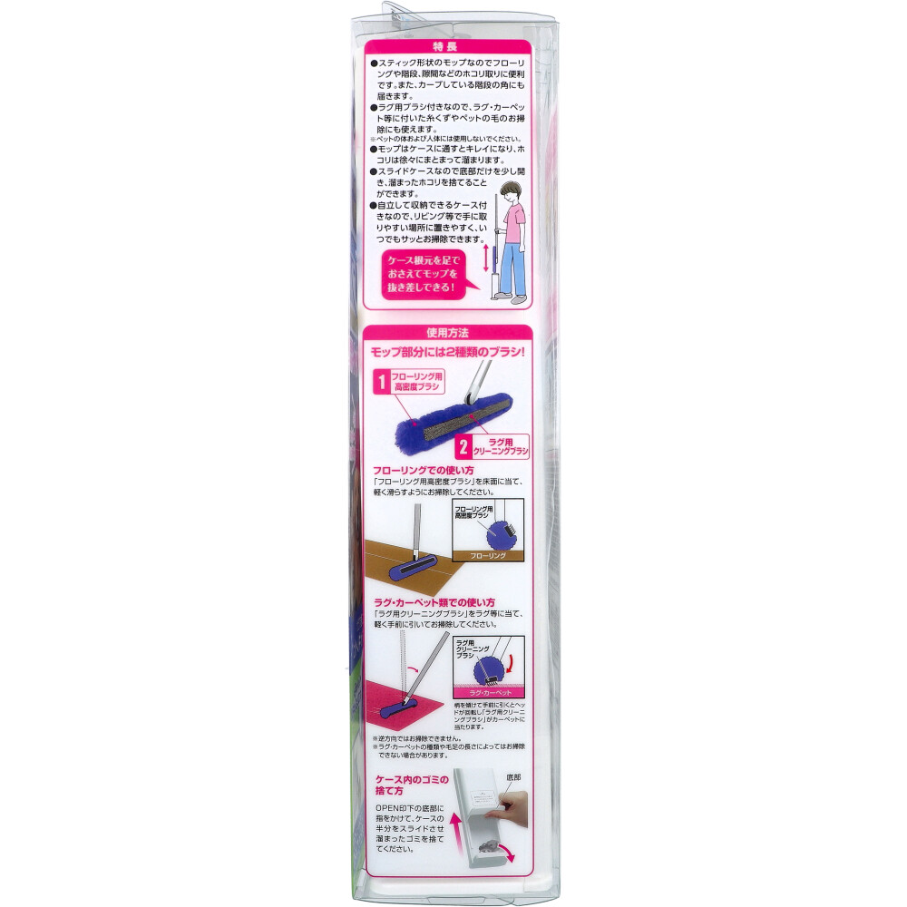 ●スティック形状のモップなのでフローリングや階段、隙間などのホコリ取りに便利です。また、カープしている階段の角にも届きます。