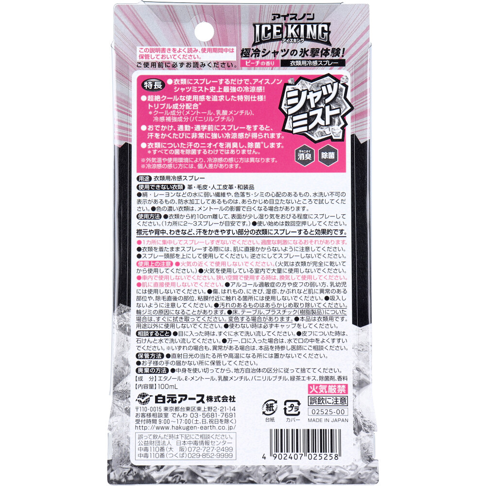 アイスノン シャツミスト ICE KING(アイスキング) ピーチの香り 100mL