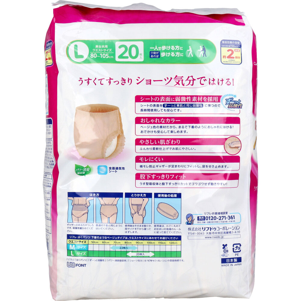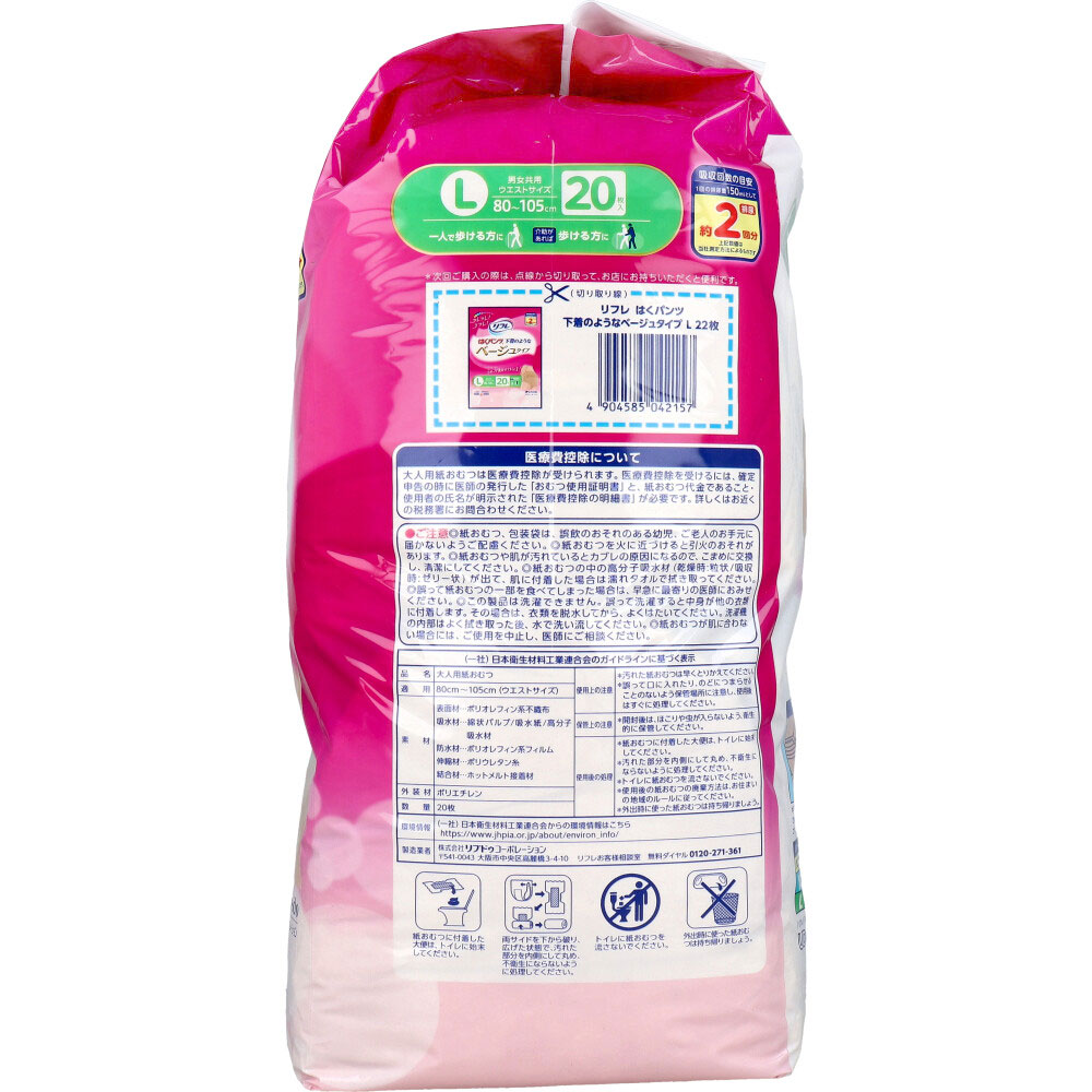 リフレ はくパンツ 下着のようなベージュタイプ Lサイズ 20枚入