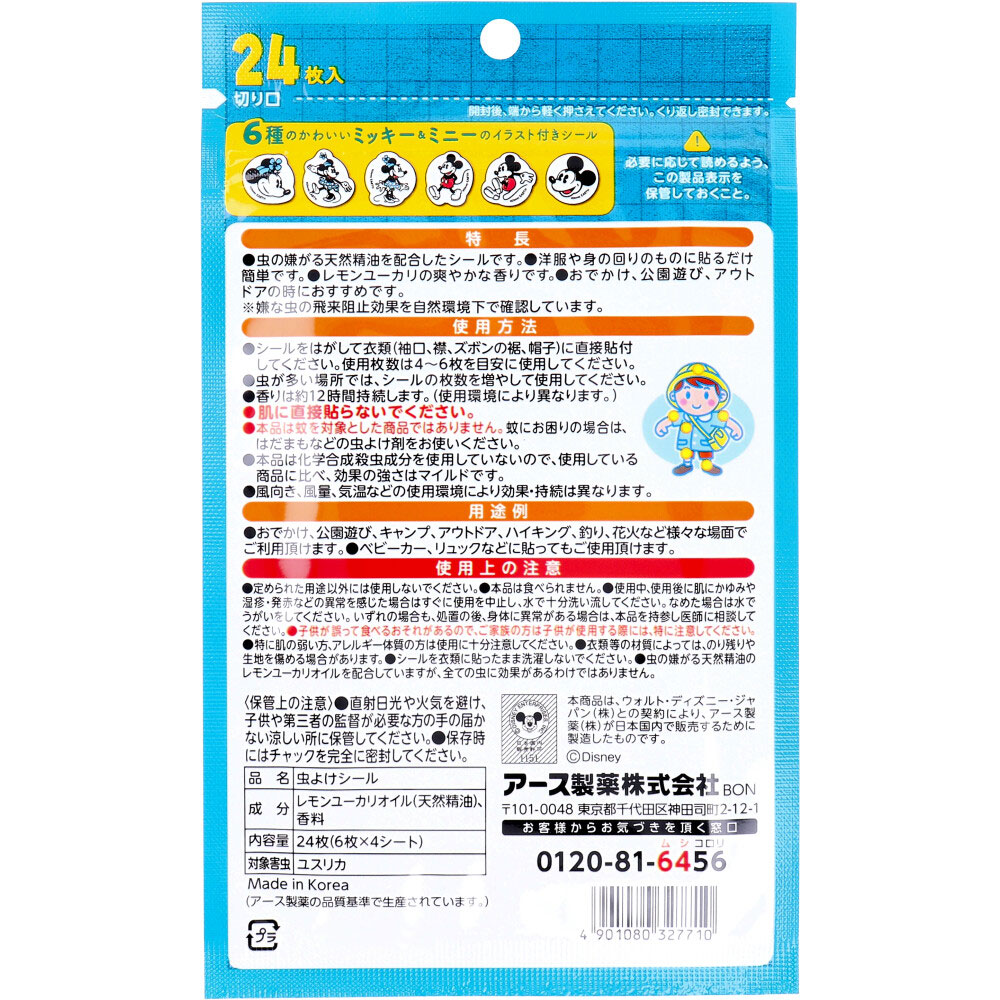 アース 虫よけシール ミッキー&ミニー レモンユーカリの香り 24枚入