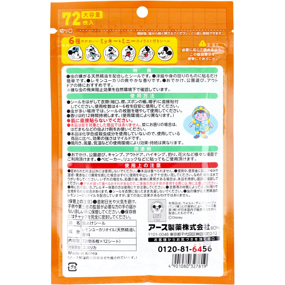 アース 虫よけシール ミッキー&ミニー レモンユーカリの香り 72枚入