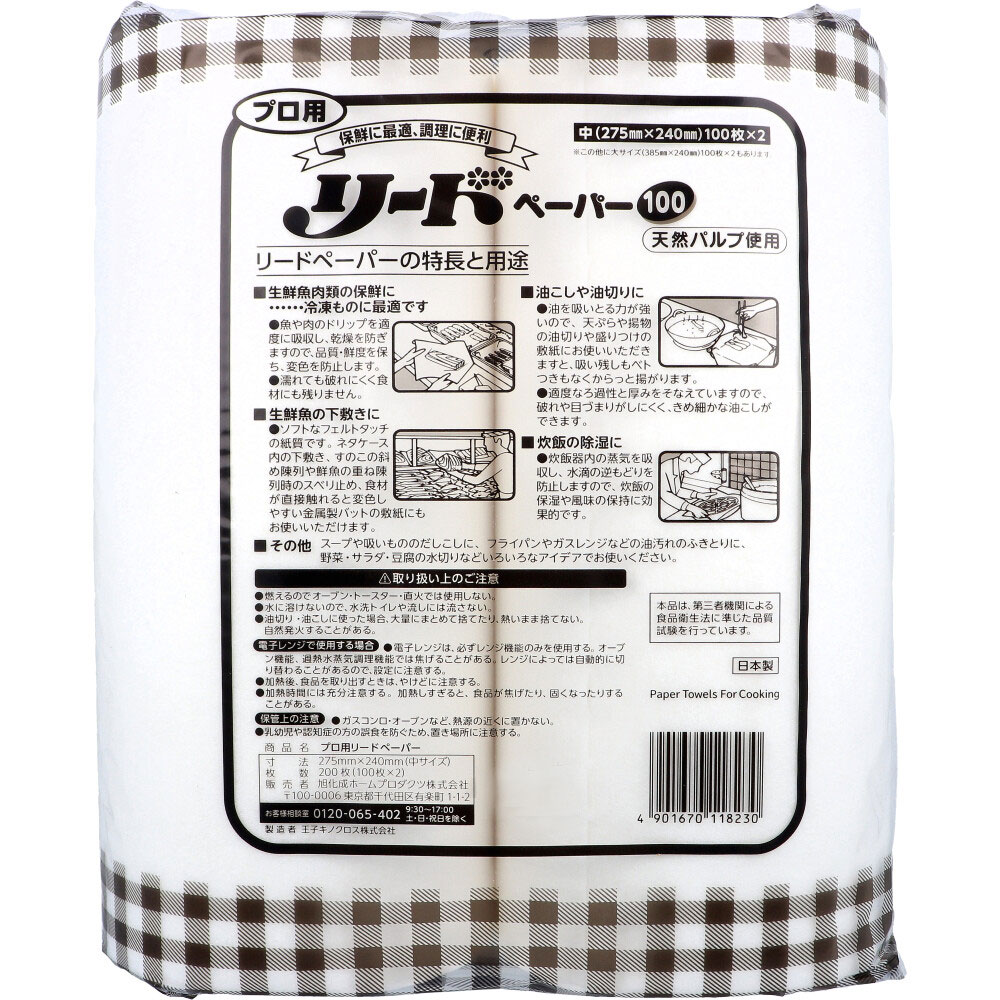 プロ用 リードペーパー100 中サイズ 275mm×240mm 100枚入×2ロール