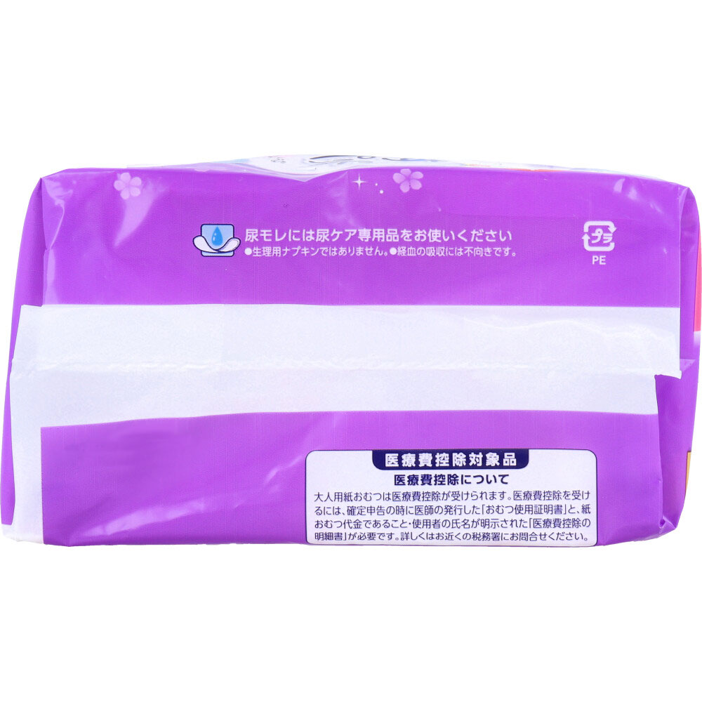 | 注意事項 | 【使用上の注意】 ・汚れたパッドは早くとりかえてください。 ・粘着部分は直接お肌につけないでください。 ・誤って口に入れたり、のどにつまらせることのないよう保管場所に注意し、使用後はすぐに処理してください。 ・パッドを洗濯しないでください。 ・パッドがお肌に合わない場合には、ご使用を中止し、医師にご相談ください。 ・尿モレには尿ケア専用品をお使いください。 ・生理用ナプキンではありません。 ・経血の吸収には不向きです。 【保管上の注意】 ・開封後は、ほこりや虫が入らないよう、衛生的に保管してください。 |